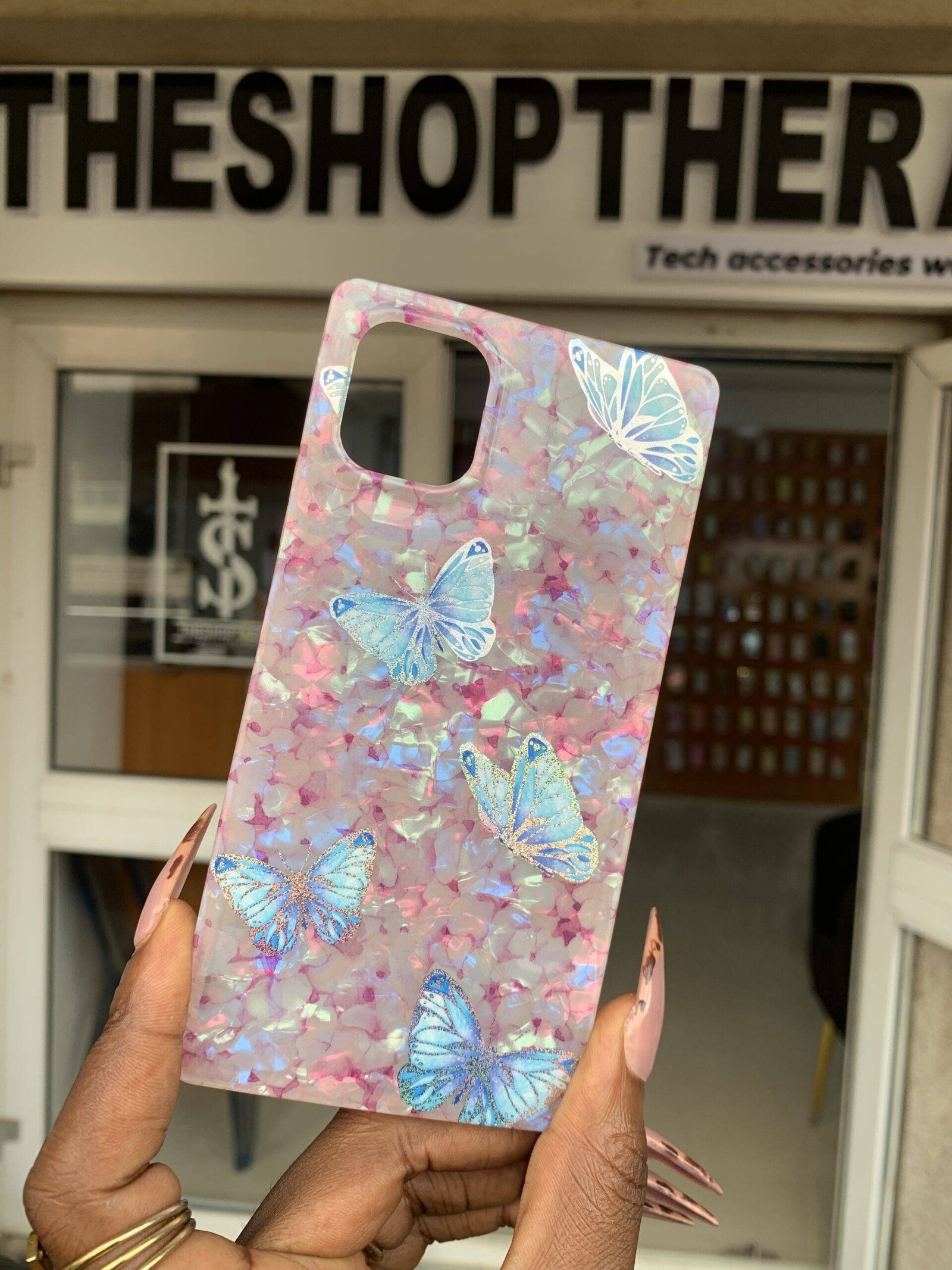 PINK REFLECTIVE BUTTERFLY SQUARE 11